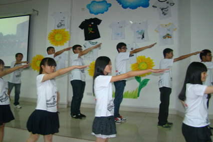 进入班服展示环节,现场气氛活跃,形式各样的班服尽显12级新生班级风采。其中,12广电1班的“一起high青春”将现场气氛推向高潮,男生的反串表演,引来阵阵掌声;12广电2班的“在水一方”则以其唯美深情打动人心,悠扬的歌声,优美的舞姿,尽显文新学子的才艺;12中文1班“走在青春的路上”,以黑色为班服底色,展示环节中,他们舞动斧头,鬼魅而张狂,让人眼前一亮;此外,12广告2班采用白雪公主系列话剧展示班服,诙谐搞笑,同时不乏激情与活力。