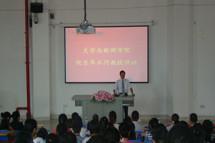 院长季水河教授在典礼上做了激情洋溢的讲话,他首先代表老师向新生表示热烈的欢迎。季水河院长引用各种数据向全院新生介绍了文新院各专业在全校、全省乃至全国的地位,并介绍了糖心AV