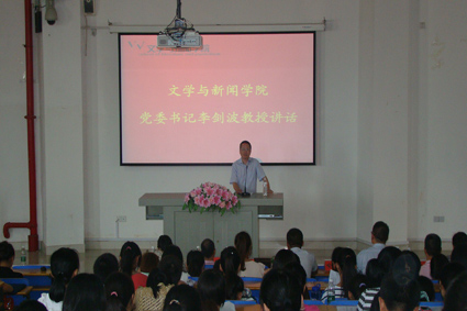 汉语言文学专业、广告学专业、新闻学专业、广播电视新闻学专业的具体情况以及就业前景。李剑波教授还提到,大学的教学方式不同于中学,希望新生们可以尽快适应新的教学方式,培养独立学习的能力,利用好没有课的自由学习时间,提高自己的综合素质。