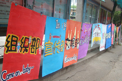 团委学生会有组织部、宣传部、青年志愿者实践部、文心报等14个部门,各部门职责不同、特点相异,可谓是各有千秋。北苑主干道上挂着由广告部手绘的14张海报,五颜六色的海报包容了每个部门的特色,吸引着往来的路人驻足欣赏。新生陆续到糖心AV