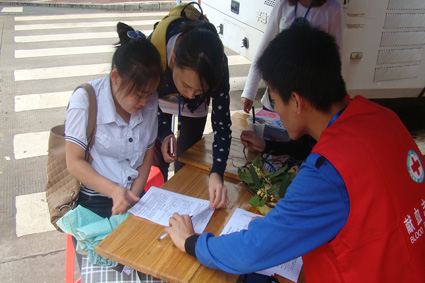 阴沉的天气阻挡不了大家献血的热情,南苑献血处前来咨询﹑献血的同学络绎不绝。青志部的志愿者们亲切耐心地为大家解惑答疑,指导填写献血单,并且在献血结束后为献血者提供一些小纪念品以资鼓励。在采访中,很多同学都表示,为国家公益事业做出贡献,不仅是一种荣誉,更是当代大学生的责任。一位曾多次献血的大四同学说,“自己只是在做身为大学生应当做的事,没什么特别的。”