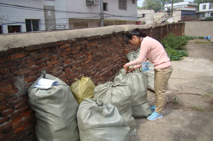 团委学生会组织部和青年志愿者实践部共同组织。来自12级广电系与广告系的十六名学员中午12:30准时在中兴公寓集合,此次活动范围包括中兴公寓四至七层和北苑部分男生寝室。学员们为每个爱心寝室发放固定编织袋来收集废品,同时志愿者们还发放流动编织袋,收集各个寝室的废品并运到废品收购站,进行分类处理。