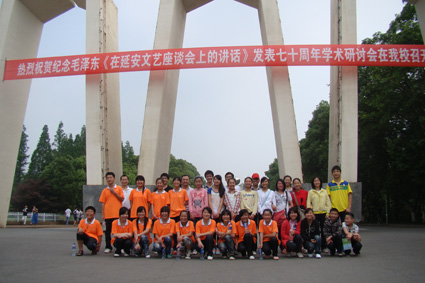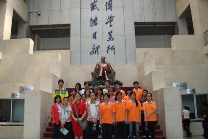 游湘大正式开始后,导游首先向老师同学们简单介绍了湘大,让他们对湘大有了初步了解。然后,导游向大家讲解了毛主席铜像及三道拱门的含义。随后在导游的带领下,田书记和老师同学们又一起参观了宽阔的文化广场,历史悠久的第一教学楼,宏伟的图书馆等。