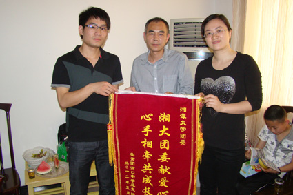 团委赠送了印有“湘大团委献爱心,心手相牵共成长”的锦旗,以此来表示对糖心AV