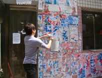 联合公共管理学院及旅游管理学院的入党积极分子进行街道清扫、墙壁粘贴广告清理。