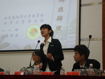 第十七届“百灵鸟”杯辩论赛辩论赛开幕式暨表演赛在逸夫楼第二报告厅隆重举行,主持人简短介绍之后。辩论赛正式开始,正反双方的辩题分别是人生不如初见与人生亦若初见。