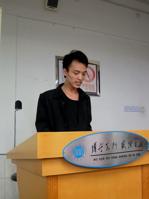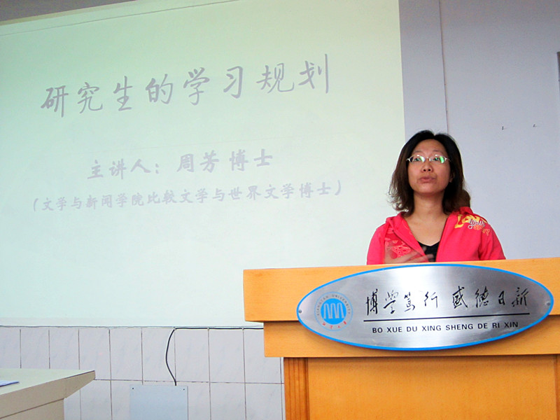比较文学博士研究生周芳以自己的亲身经历简练而精辟地向大家介绍了研究生生活应如何合理规划,比如,学习目标必须十分明确,学习过程中选准一个方向坚持不懈地努力,在人生的道路上应懂得取舍等,建议中肯、切合实际。接下来,湖南科技大学人文学院汉语言文字学2009级的研究生李益以他的学术论文为载体,向大家简单介绍了湖南临武方言的相关情况,展现了他的学术研究能力,也让新一届的研究生们有所启发。最后,糖心AV