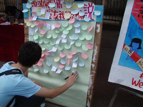 两天时间,北苑摆点处十分热闹,各班寝室积极参与,很多同学前来询问有关寝室文化节的具体事项,同时也纷在此留言,写下对室友的祝福。本届寝室文化节,要求大一每班至少两个寝室参加,大二实行自愿参加的原则。权益保障部工作人员表示,今年各班寝室参与热情极高,报名的寝室很多,大多数新生班级报名寝室数量都超过两个。