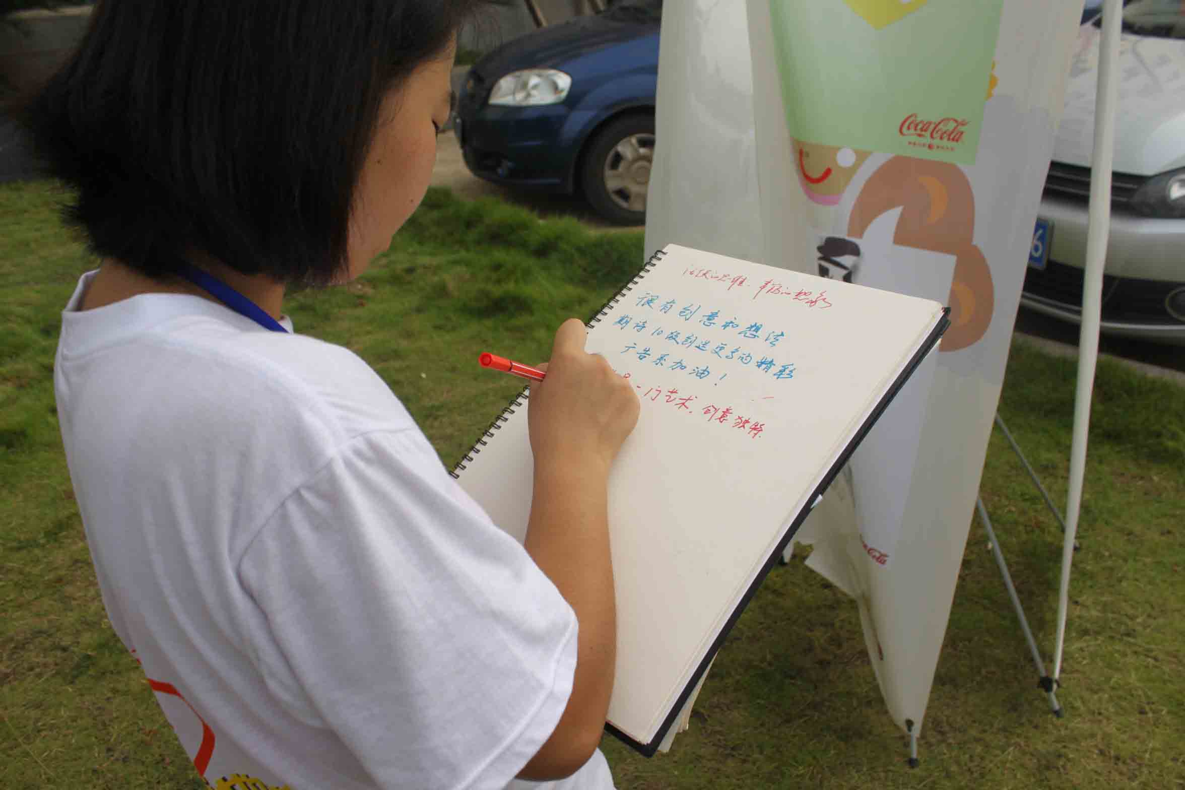 展览上,不少新老生驻足欣赏,工作人员热心地为他们讲解作品,介绍广告学知识,感兴趣的同学还在留言本上写下了自己的观看感受。一名广告系新生看完后坦言:“这是我第一次这么近距离接触到广告,学长学姐的作品让我感受到广告所带有的特殊魅力,更加坚定了我要学好广告的信念。”一位来自外国语学院的许同学向记者谈到自己的感受:“看完这些作品,发现很多创意是来源于生活,并且是一些常见但容易被人忽视的细节,它们也活跃了我的思维。”