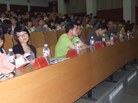 副院长王洁群教授,教务处考试中心肖虎成主任、黄伯清老师,广告系唐晓玲、王苑丞、刘中望、谭石维、胡琼华等老师,广告学、广播电视新闻学、新闻学、汉语言文学、艺术设计、动画、机械设计等相关专业220余名研究生、本科生参加了本次大会。