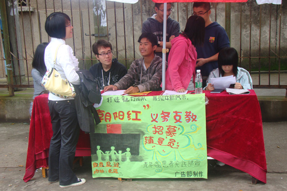 “朝阳红”义务支教队是一个学生自发组织成立12年之久的爱心公益团队。当深感支教意义和责任重大时,“朝阳红”义务支教队坚定了支援教育事业的决心。支教活动主要安排在每周星期二下午,志愿者将前往周边各小学支教。青年志愿者实践部部长雷亚男表示,团队会一如既往的发动更多的大学生加入这个爱心支教活动。