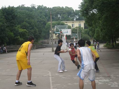 在双方队员进行了简单的热身后,男篮比赛于1点半正式开始。一侧身一传一接,研二选手配合默契,比赛一开始就显示出了优势。研一选手丝毫不敢放松懈怠,围追阻截。在上半场结束时,研一队仍以7分之差失利。下半场一开始,研一队就显示了后发制人的强大冲劲,可终不敌研二队在实力上的明显优势和天衣无缝的配合。研二队最终以64比48的绝对优势战胜了研一队。