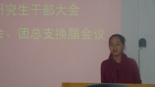 接着,第九届研究生会、团支部各成员分别走上讲台就各部门在过去一年里所做的工作作了简要总结,并勉励新成员再接再厉,争取在新的一年里做出更大的成绩。