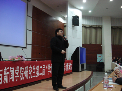 副院长雷磊教授,和李阳疯狂英语湖南区教学总监唐柱国老师!”在来自08级传播学专业的司仪刘娇的号召下,全场掌声雷动,雷磊教授和唐柱国老师走上讲台。