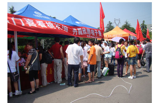 辅导员更是辛苦,要把每一个接到的新生送到宿舍,安顿好新生,然后拖着疲惫的身影来到俱乐部前坪,哪怕他们多么渴望坐下来喝杯水歇一会儿,但只要听到报到处说有自己班上的学生时,就会高兴的跳起来,马上去迎接,“太好了,我们班又来一位‘小朋友’”。