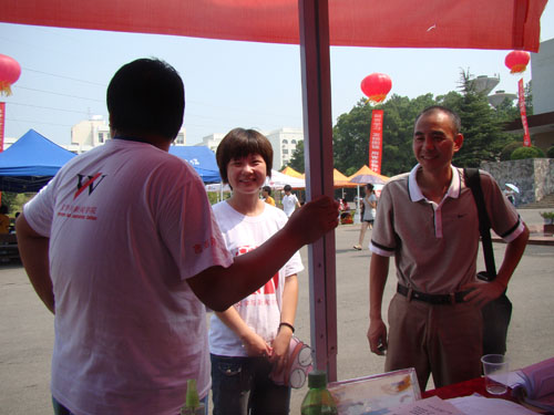 (本网讯)8月28日上午10:40,我文新院团委副书记唐春老师来到迎新接待点了解相关情况。