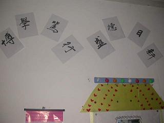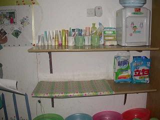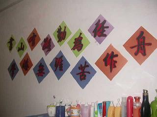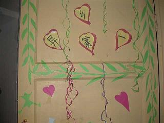 中兴的四人寝室普遍给了我们一种宽敞融洽的感觉,各有各的风格。充满书香气息的516在墙上书写了“书山有路勤为径,学海无涯苦作舟”几个大字,以督促自己学习。广电一班614“我们的窝”在屋顶装饰了许多彩色的纸制百合花,主题命名:芳草年华。631是最后一个寝室,也是最让人惊奇的寝室。门口挂着自制的星形吊坠,上面有08中文二班所有同学和他们辅导员的照片,进入室内是一室的粉红气息,用粉色褶皱纸包裹的灯管,用粉色气球装点的屋顶和屋门,每一个气球上都有同学们的祝福。最令人欣喜的是,四个人的书桌墙上都有属于自己的愿望与心情:“青春在这里激荡,梦想在这里起航,眺望远方,我们从这里成长。”“我们走着,为梦想而追逐、闯荡,我们知道我并不孤单,我和我的朋友一起成长。”地上更是别具一格的贴了许多脚掌印,象征着她们成长的足迹。手工制的花篮与花是她们情谊与才艺的体现,这里是她们梦想的国度!