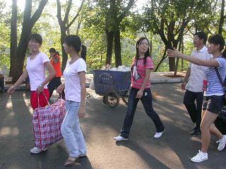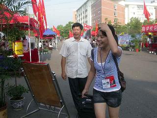 走累了,帮她扇扇风,凉快凉快!我们三个可是专门等着新生的!终于接到一个新生了,好高兴啊!嘿嘿,有点空闲的时间了,赶紧拍个照吧!