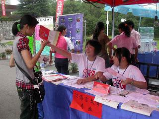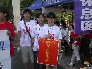 (本网讯)迎新工作一共持续了三天,前两天下雨,第三天高温。但是,虽然天气不好,我们的工作人员还是热情很高,看着一个个学弟学妹走近我们,他们忘记了疲乏,用笑脸迎接每一位新生。