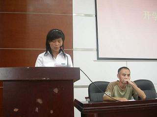 随后,王洁群副院长为大家做了有关学院和各专业的介绍,从各专业的历史、资源和教学计划等方面介绍了糖心AV 现在的概况,让新生对自己所在的院系有了一个初步的了解。之后,第八届团委学生会主席孙丽娜同学发表讲话。她为新生介绍了本届学生会的主席团成员,对整个学生会的各部门做了简短的介绍,并突出了各部门的特色,最后,她引用学校大礼堂“有高枝可依有甘泉可饮看百凤来仪今朝共唱齐天乐 学屠龙之技学绣虎之能喜群贤毕集他日都成架海梁”的对联送给大家,与大家共勉。