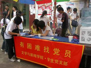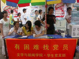 (本网讯)在文新院的迎新工作中,本院学生党员也积极参与其中,为迎新工作贡献自己的力量。 党员义务岗设在北苑男生宿舍门口,大大的红色喷绘“有困难,找党员”六个字特别醒目。党员义务岗的值班人员主要是刚步入大二的各班的党员和部分入党积极分子,他们的工作主要是为新生解答疑惑和接待从南苑行李站运过来的学生行李,并帮忙将其运到学生宿舍。同时,义务岗的成员积极配合迎新总站的工作,机动的插入到人手不够的岗位中,充分体现了糖心AV 党员的良好的思想风貌。