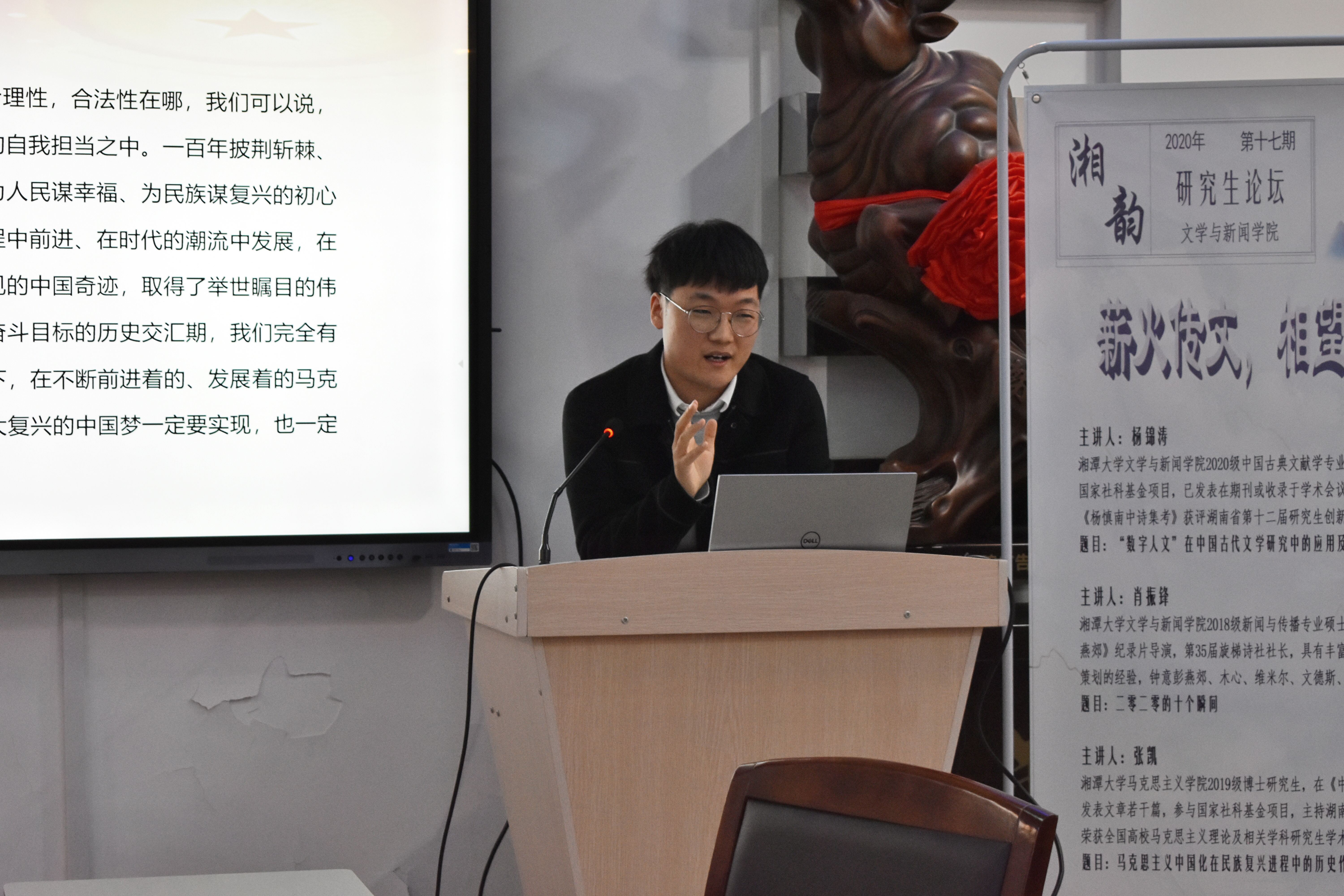 研究生会、研究生团总支承办的“薪火传文,相望风雅”——第十七期“湘韵”研究生论坛在文科楼318会议室成功举办。