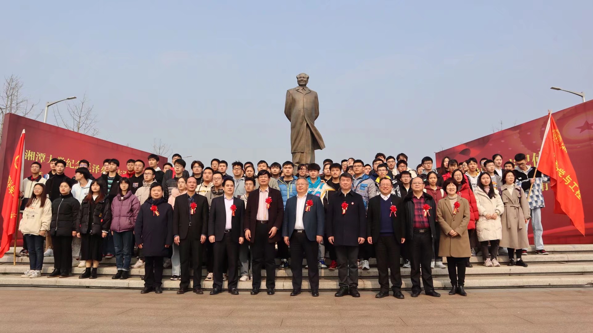 不负先烈,不负时代,我们不忘初心,牢记使命。在庄严的音乐中,全体师生向毛泽东主席铜像深深三鞠躬,向毛主席表示至高的敬意与深刻的缅怀。“太阳最红,毛主席最亲”,在场师生用满怀深情的歌声深刻诠释了对毛泽东同志的敬仰。“进入新时代,我们应当坚定信念、继续前进,把实现中华民族伟大复兴的中国梦一步一步变为现实。”