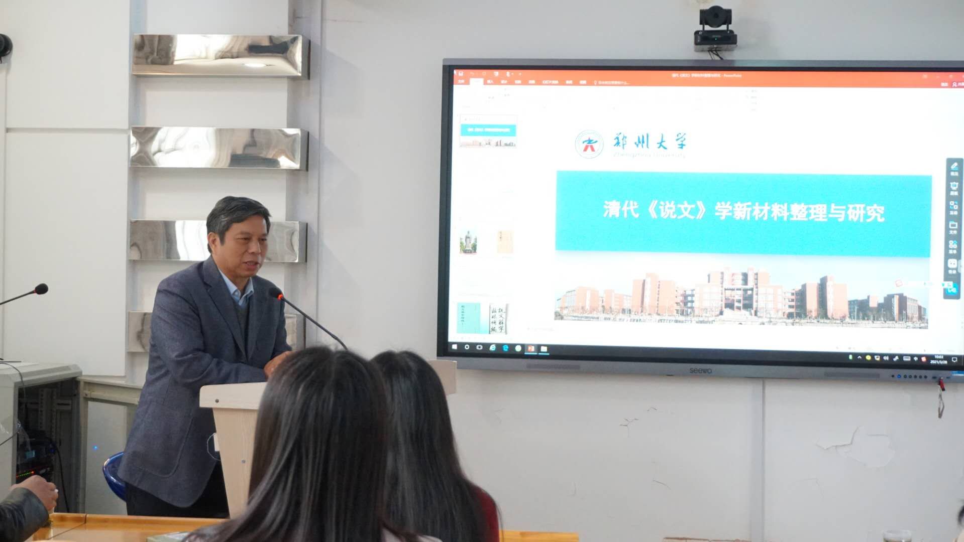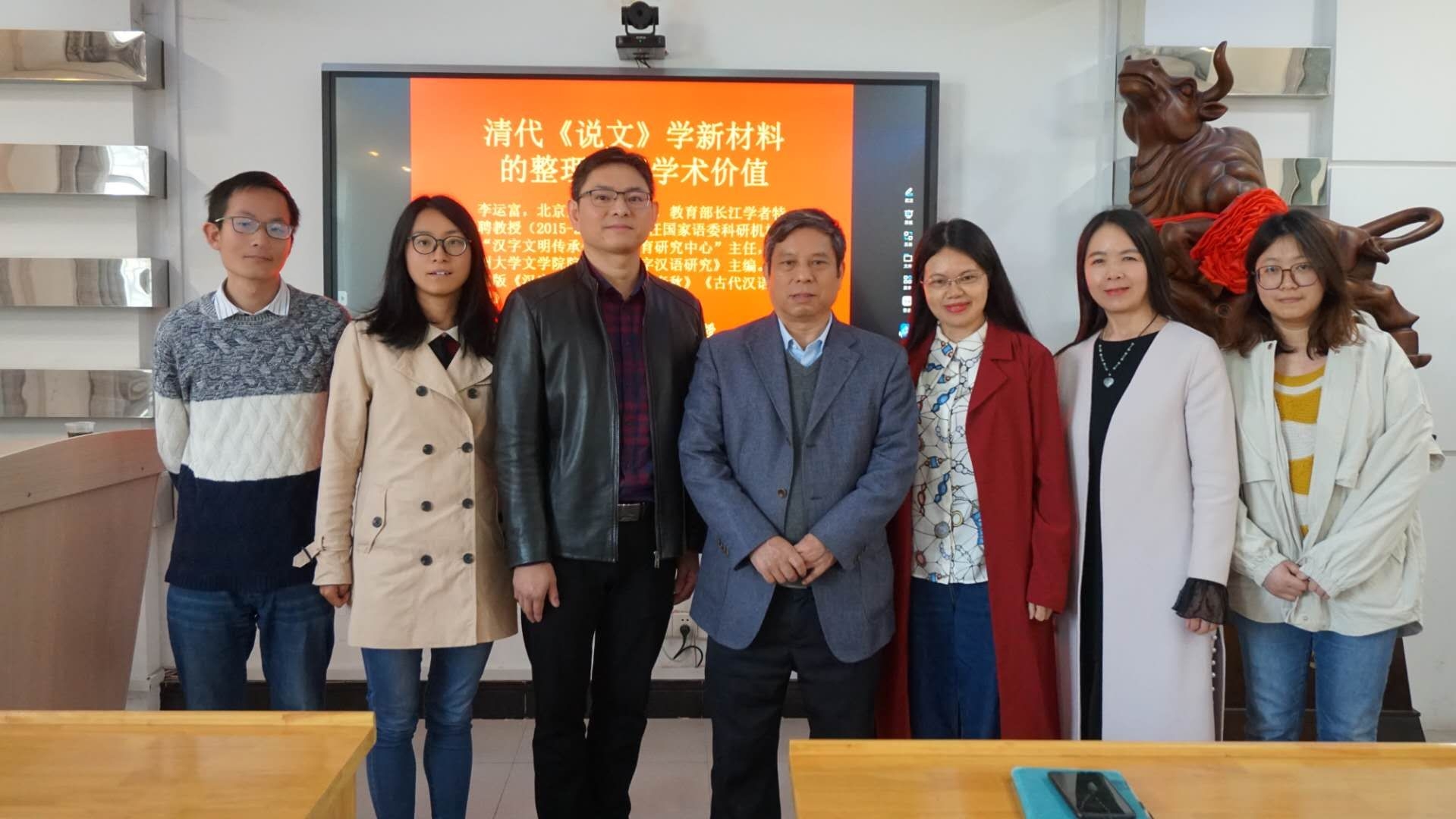 此次讲座,李运富教授以《清代<说文>学新材料的整理及其学术价值》为题,由浅入深。他以《说文解字》的学术地位简介和古今《说文解字》的大致研究史为切入点,进而引出这些年来郑大学者们对《说文解字》新材料的研究及成果。