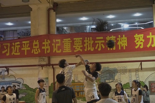 裁判一声哨响,土力院队员率先抢到篮球。15号王杰与5号选手巧妙配合,躲过“左右夹击”,接着,5号选手一个漂亮的转身,成功拿下首球!换发球后,文新院21号选手龙思圪势如破竹,极速狂奔,篮筐下轻巧一跃,进球!龙思屹趁势追击,紧跟对手,猛烈进攻抢下篮球,几个箭步后再进一球!场下一片热烈的欢呼和掌声。