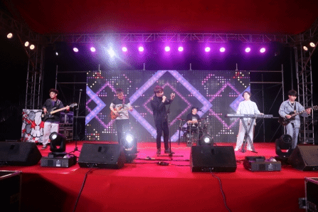 随后由V’s team为大家带来的开场舞蹈《take me down》音乐节正式拉开帷幕。Bassrider乐队带着《GOOD BOY》《Without You》《Scared To Be Lonely》等七首歌曲继续引爆全场,将音乐节的气氛推入高潮。这些歌曲节奏动感,激情澎湃,台下观众挥舞的荧光棒在夜色中形成了一道靓丽的光墙,昭示着大家沸腾的热情。