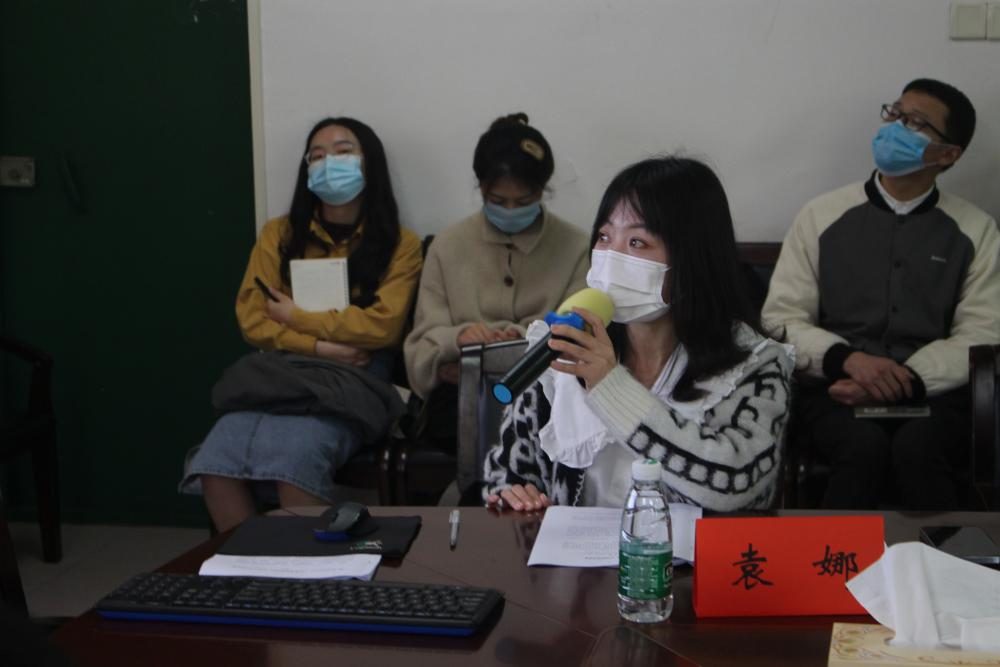 袁娜博士的报告题为“困境:《莫菲》中的国际象棋叙事”的学术报告。她从选题背景、核心观点和论文概述三方面,深入剖析了贝克特借助国际象棋来建构人的身体困境、空间困境和交流困境。张慧佳博士和季念副教授对袁娜博士的报告做出评议。