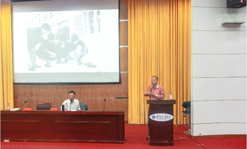 张效雄通过图文组合的形式、段子式的语言、亲切的事例,使得讲座现场的掌声不断,笑声迭起。在回忆往昔之余,张效雄也建议学生们要扎根在某一领域坚持深耕,长此以往便能成为该领域的专家。其次,要对平时所看的书籍进行类别分类,学会搜集和存储各类的资料,运用到自己的学习工作中。
