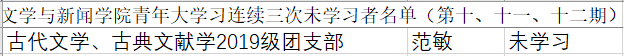 现对学院连续三次(第十期、第十一期、第十二期)青年大学习未学习同学进行通报批评。