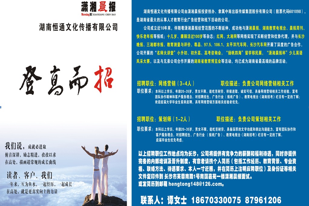 潇湘晨报招聘文案策划