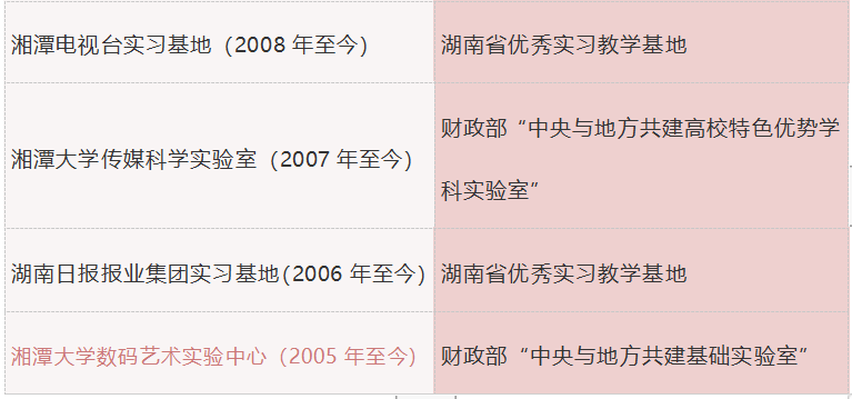 -湘潭广电传媒集团校企合作人才培养基地为省级示范基地;湖南日报报业集团为省级研究生培养创新基地;湖南日报报业集团、湘潭广电传媒集团为省“为改革攻坚献策”对口服务联系点。