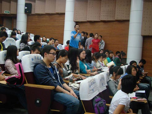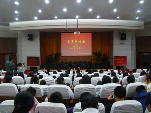 于学习,专业成绩一直名列前茅、获得过学校甲等与国家奖学金的佘晔认为“学习态度决定学习效果,把它当回事便能做得好”。她分享其学习心得说:“专业课要坚持认真听,并且形成独立的思考能力与习惯;此外,在课余要不断扩充自己的知识储备。”在社团活动方面,曾担任我院院报《文心报》社长的肖丽坦言一年的社长经历不仅加强了对自己的认识和胆量,也改善了其做事态度及解决问题的思考方式。同时兼任班委、积极参加志愿服务活动的她认为“每件事都能真正按时又踏实地做好,平衡好学习工作活动的时间不成问题”。而关于实习,有丰富实习经历的左琳建议新生大学里定要做好人生职业规划,学好专业知识之余把握机会锻炼自己,弥补不足,且多与老生交流经验,可少走弯路。她提醒大家在今后的实习中要“多做举手之劳的事;学习不分校内校外,多积累”。最后,就如何做好一名党员,获得过“2011年度湖南省优秀大学生党员”称号的郝婕妤细说个人体悟:要做一个积极进取、奋发向上,严于律己、脚踏实地,宽容善良、坦荡从容、淡泊名利、宠辱不惊的人。她提醒新生党员一定要牢记党员名后所背负的义务责任与伟大使命。随后的提问互动环节,现场气氛活跃,学生反映热烈,四位老党员就新生所提问题做出诚恳回答,赢得在场学生敬佩的掌声。