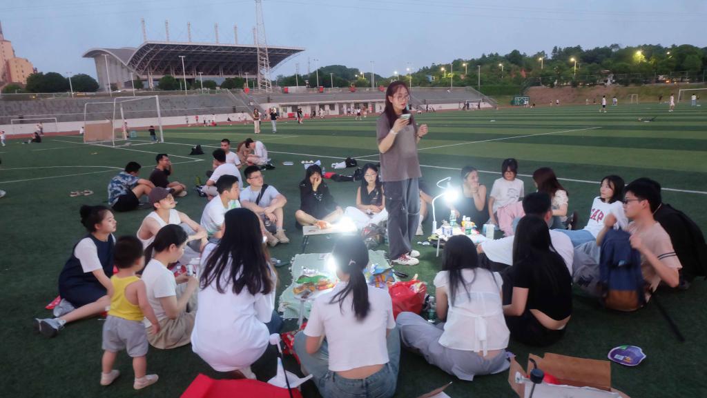 活动伊始,两院同学齐聚第四田径场,进行了集体合影留念。随后,主持人发表了热情洋溢的开幕词并简述了本次联谊活动的流程安排和游戏规则。在两院负责人的组织下,同学们紧密围坐一圈,并互相分享零食。在轻松愉快的氛围中,联谊活动正式拉开帷幕。
