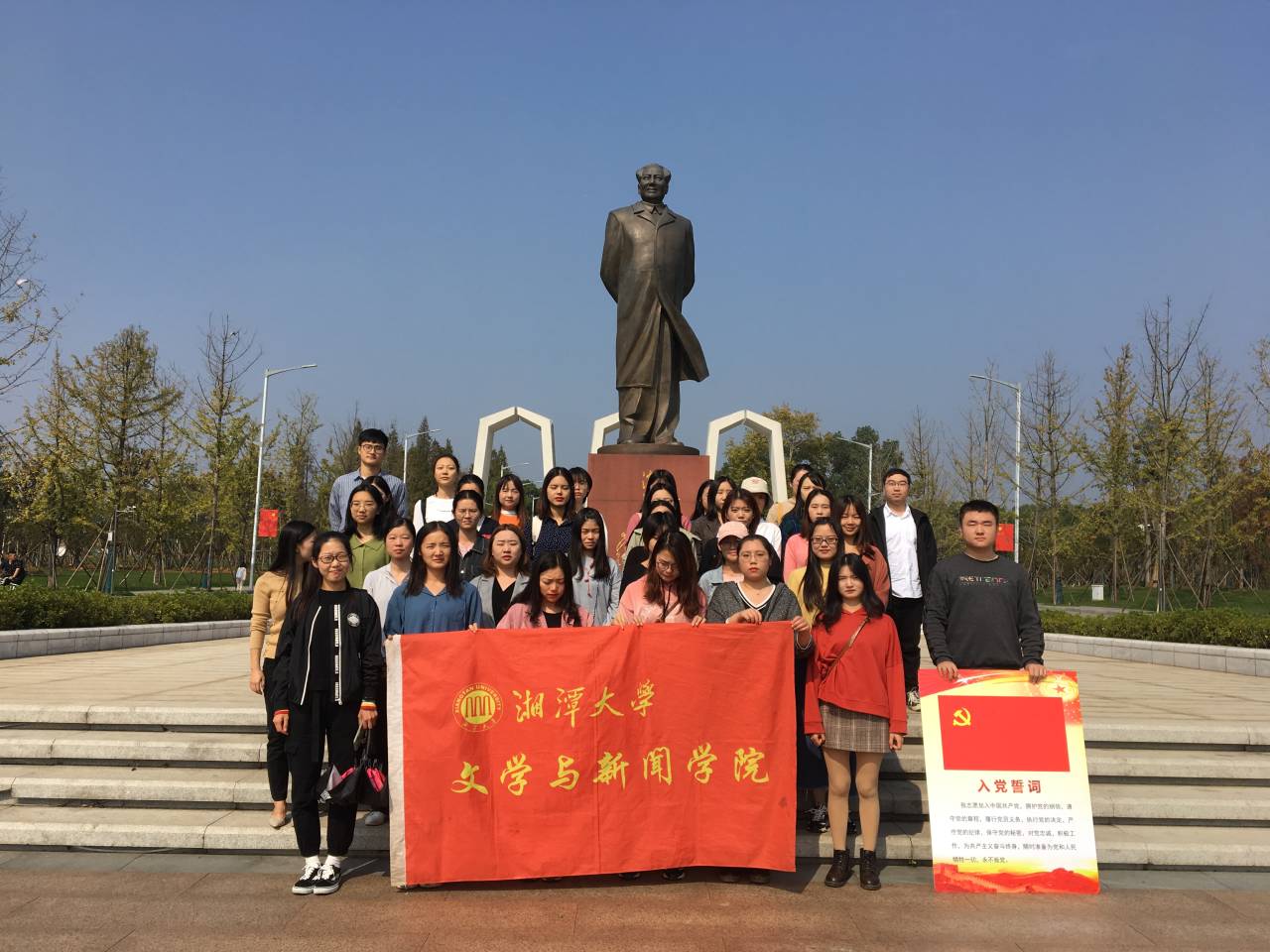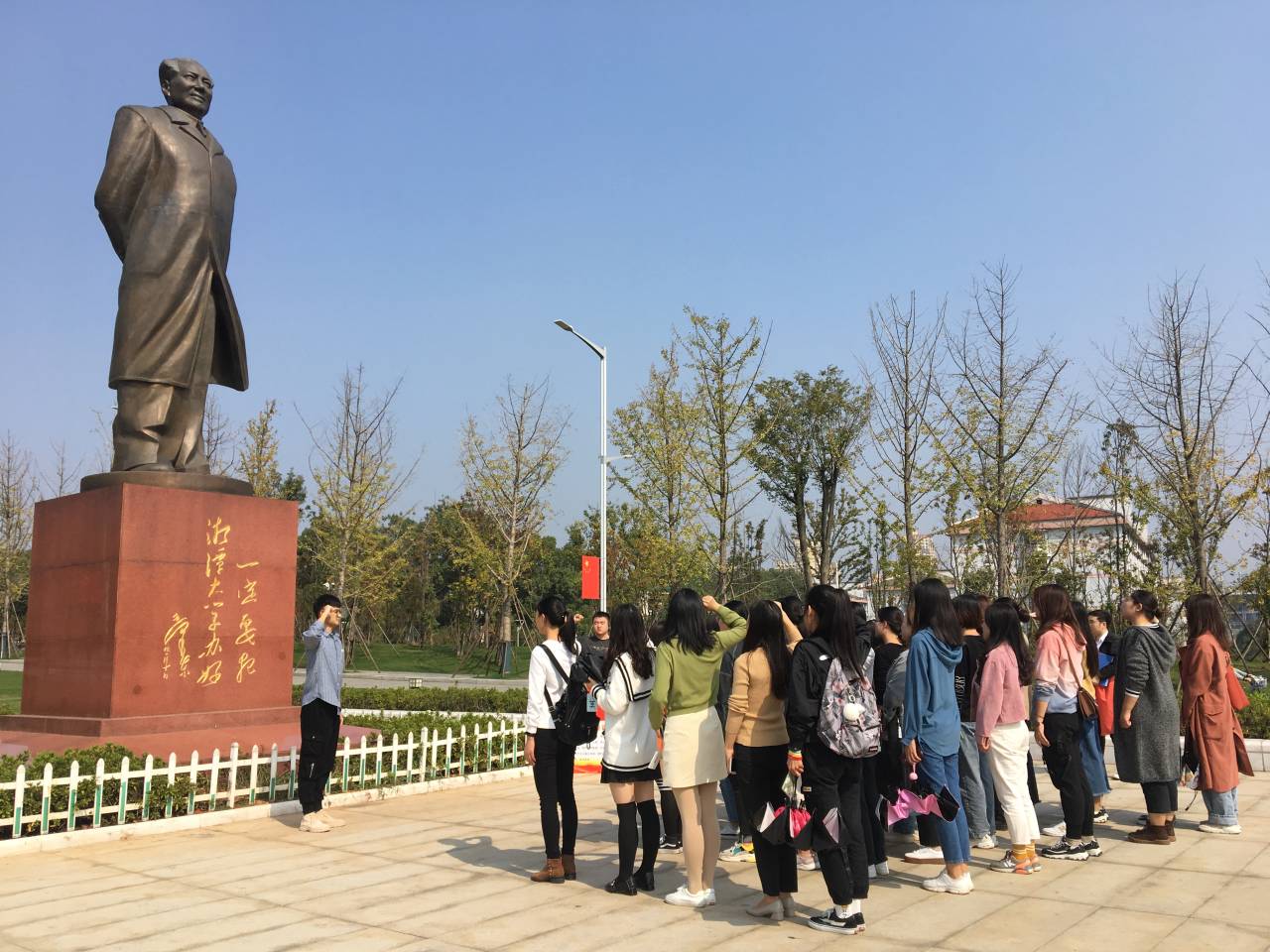 活动伊始,全场人员齐唱国际歌,激荡的旋律响彻铜像广场。由王朋同学领誓,全体同学举起右手,在毛主席铜像前庄严宣誓。之后,同学们就如何践行党员的初心和使命展开热烈讨论。