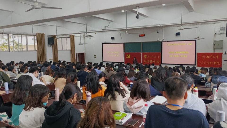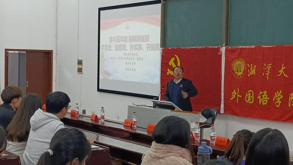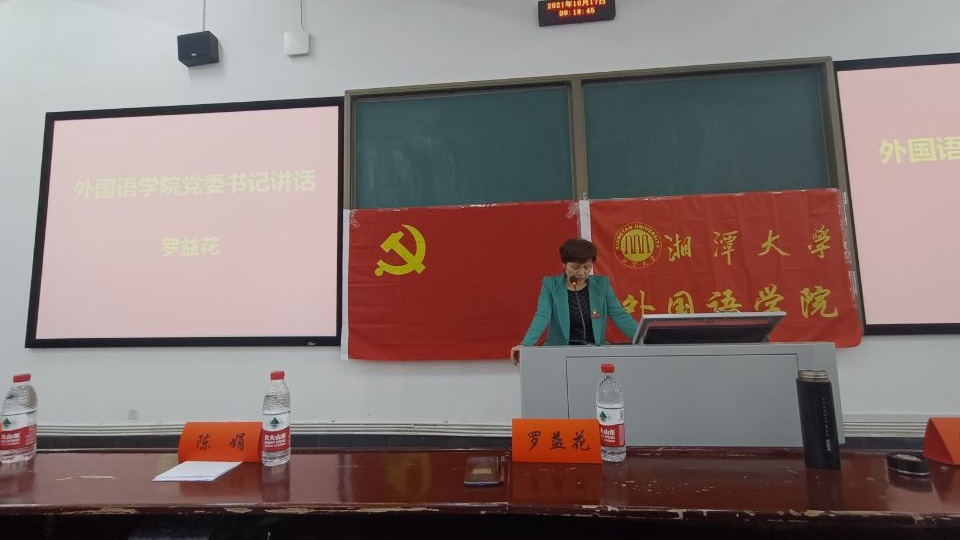 党委副书记陈娟老师主持,并宣讲了相关纪律要求,随后,全体参会人员起立奏唱国际歌。结束后,由2019级西班牙语一班的谢雨蕊同学进行发言,对于党的历史做出总结,并对同学们的未来作出具体的的期望和要求,内容具体详实,生动诚恳。接下来,由罗益花书记进行发言,宣讲了党的相关政策与路线,强调同学们要学习党的相关内容,认真进行党课的学习,演讲过程中,同学们认真听取意见,会议进展顺利。