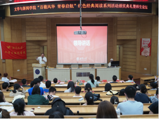 副校长刘建平表示,红色经典是传承红色基因、赓续红色血脉的重要载体。他从湘潭这片红色沃土的历史出发,历史典故信手拈来,讲述过程旁征博引,掀起了现场的高潮。他勉励青年学生要善读书、读好书,既要读传统文化典籍,也要读革命文化书籍,还要读社会主义先进文化的相关书籍,并且要在读书之余积极实践,成长为能担当民族复兴重任的时代新人,在两个一百年的接续奋斗中谱写出一首曲曲调昂扬、节奏明快、永久传唱的新时代青春之歌。