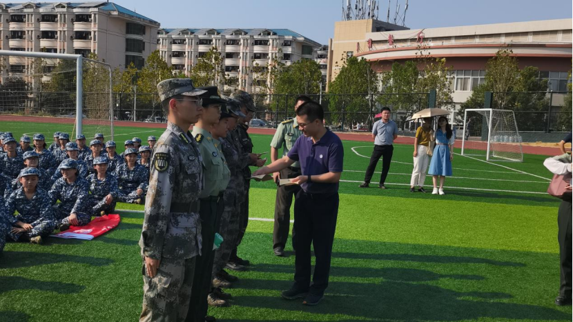 向参训教官表示慰问,感谢军训教官的付出,要求他们一定要严守训练标准,将军训工作同教育工作结合起来,引导同学们尽快适应大学生活,增强集体荣誉感。