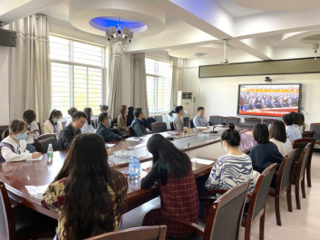 党委副书记周鹏飞、教工支部书记吴钊、教工支部书记马正锋、组织员刘非、研究生辅导员张明士以及学生党员代表们,一同在文科楼317会议室集中收看了党的二十大开幕现场直播,认真聆听习近平总书记的会议报告。直播结束后,会议室内掀起了学习、讨论党的二十大重要会议精神的热潮。