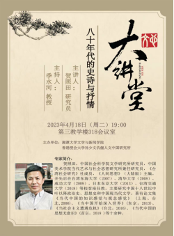 当代艺术与社会思想研究所兼任研究员,《台湾社会研究》社成员,《人间思想》(大陆版)主编贺照田莅临我院,为师生带来了题为“80年代的史诗与抒情”的讲座。讲座由我院季水河教授主持,现当代文学、比较文学、古代文学专业学生现场聆听了讲座。