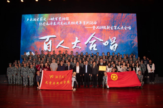 纪念毛泽东同志诞辰130周年系列活动暨2023级新生百人大合唱比赛在大礼堂隆重举行。来自全校的20支队伍同台竞技,展现风采。我院演唱曲目《如果明天就是下一生》以9.706高分位列第三名,荣获二等奖。