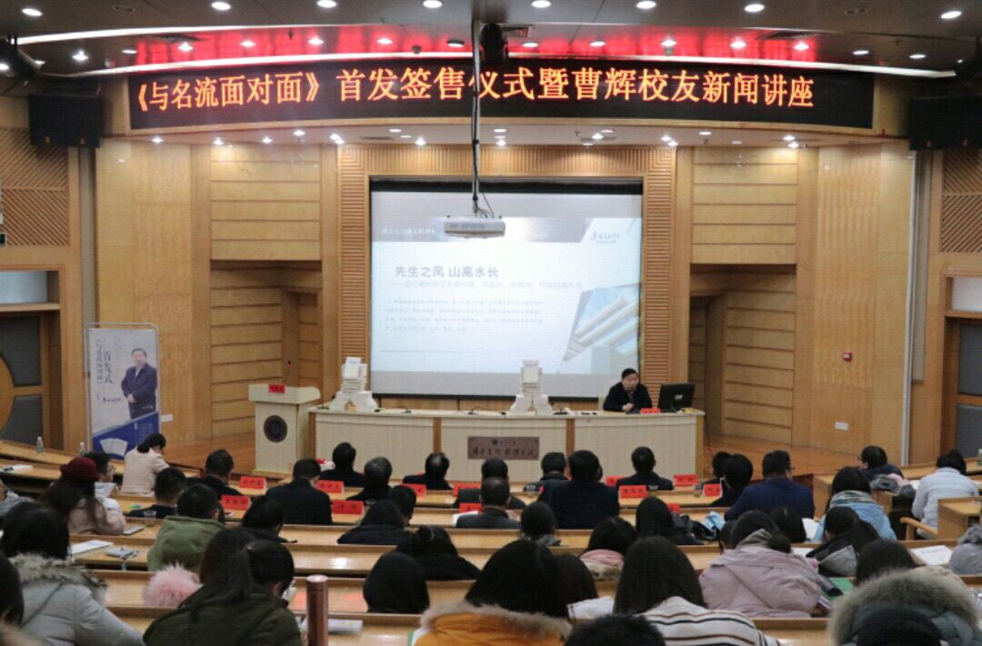 图书馆报告厅里却是人声鼎沸、掌声雷动,《与名流面对面——曹辉新闻作品精选》新书首发式、新闻讲座暨签售活动正在此举行。副校长刘建平,湖南日报社编委、市州糖心AV主任黄志坚以及党委宣传部、糖心AV