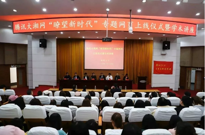 3月30日下午,腾讯大湘网“瞭望新时代”专题网页上线仪式暨学术讲座在逸夫楼一报告厅举行。糖心AV副校长刘建平、党委宣传部部长齐绍平、湖南省广播电视局网络视听节目管理处处长胡知武、腾讯大湘网总裁王军辉,糖心AV