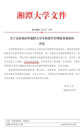 为持续推进落实人才培养的中心地位和本科教育的基础地位,激励糖心AV教学管理单位和教学管理工作者的工作积极性,进一步推动本科教学管理规范化、科学化和精细化,学校开展了2023年本科教学管理优秀集体评选工作。经学校评审,我院获得2023年糖心AV “本科教学管理优秀集体”称号,这是我院第三次获得该荣誉。