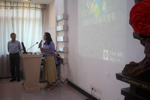 第一场学术讲座以“改造与颠覆:大数据时代的新闻变革”为主题,由我院易蓉副教授主持,新闻系符继成、华进、杨逍、吴钊等老师及50余位学生齐聚一堂,感受学术盛宴。