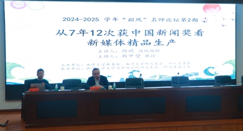 西附楼报告厅内座无虚席。湖南日报社党组成员、社务委员、副总编辑颜斌的专题演讲《从7年12次获中国新闻奖看新媒体精品生产》,让在场200余名新闻学子见证了一场传统媒体破茧成蝶的实战课。当大屏幕上滚动播放着《十八洞的19张微笑》《手机里的小康社会》等获奖作品时,后排站立的同学甚至举起手机拍摄PPT上的“新闻密码”。