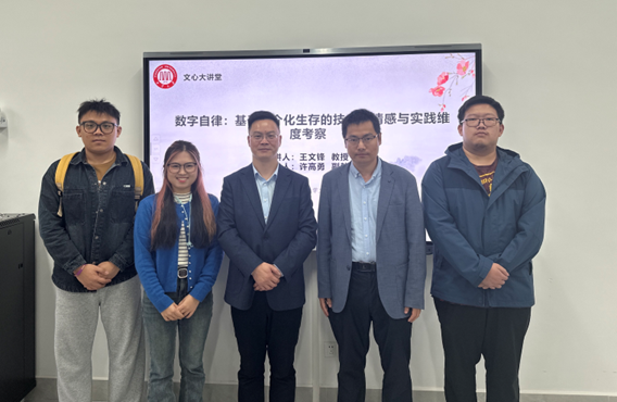 党委书记王文锋教授莅临文科楼215会议室作题为“数字自律:基于媒介化生存的技术、情感与实践维度考察”的学术讲座。本次讲座由许高勇副教授主持,25级新闻与传播、新闻传播学专业研究生参与。